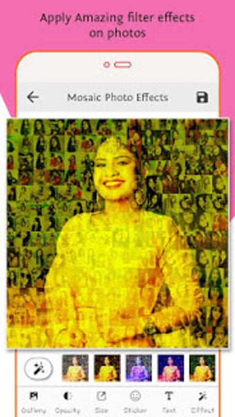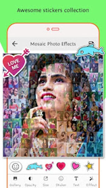 التطبيق سهل الاستخدام، ويمكنك تحديد الصور من معرضك لإنشاء تأثير الفسيفساء. يمكنك ضبط تأثير الفسيفساء وحجم البلاط باستخدام شريط التقدم، وسيقوم التطبيق بتجانب الصورة تلقائياً لتناسب بشكل صحيح. بمجرد الانتهاء، يمكنك حفظ الفسيفساء في ألبومك ومشاركتها على وسائل التواصل الاجتماعي. التطبيق مثالي لأولئك الذين يحبون الملصقات والصور المربعة والفلاتر. يقدم مجموعة مذهلة من فلاتر الفسيفساء والتأثيرات لجعل صورك تبرز.